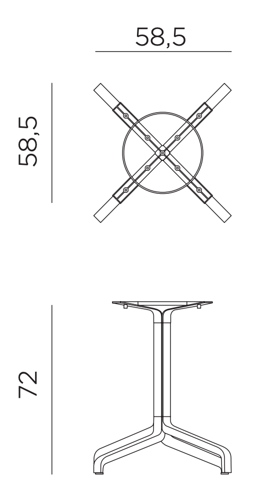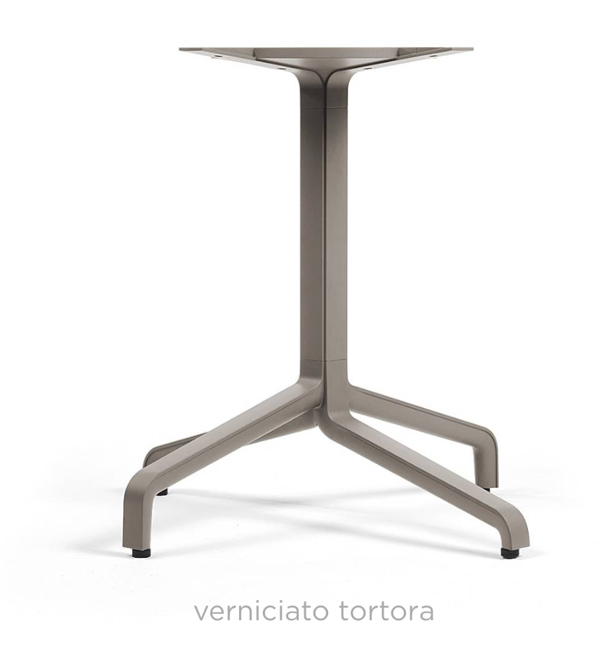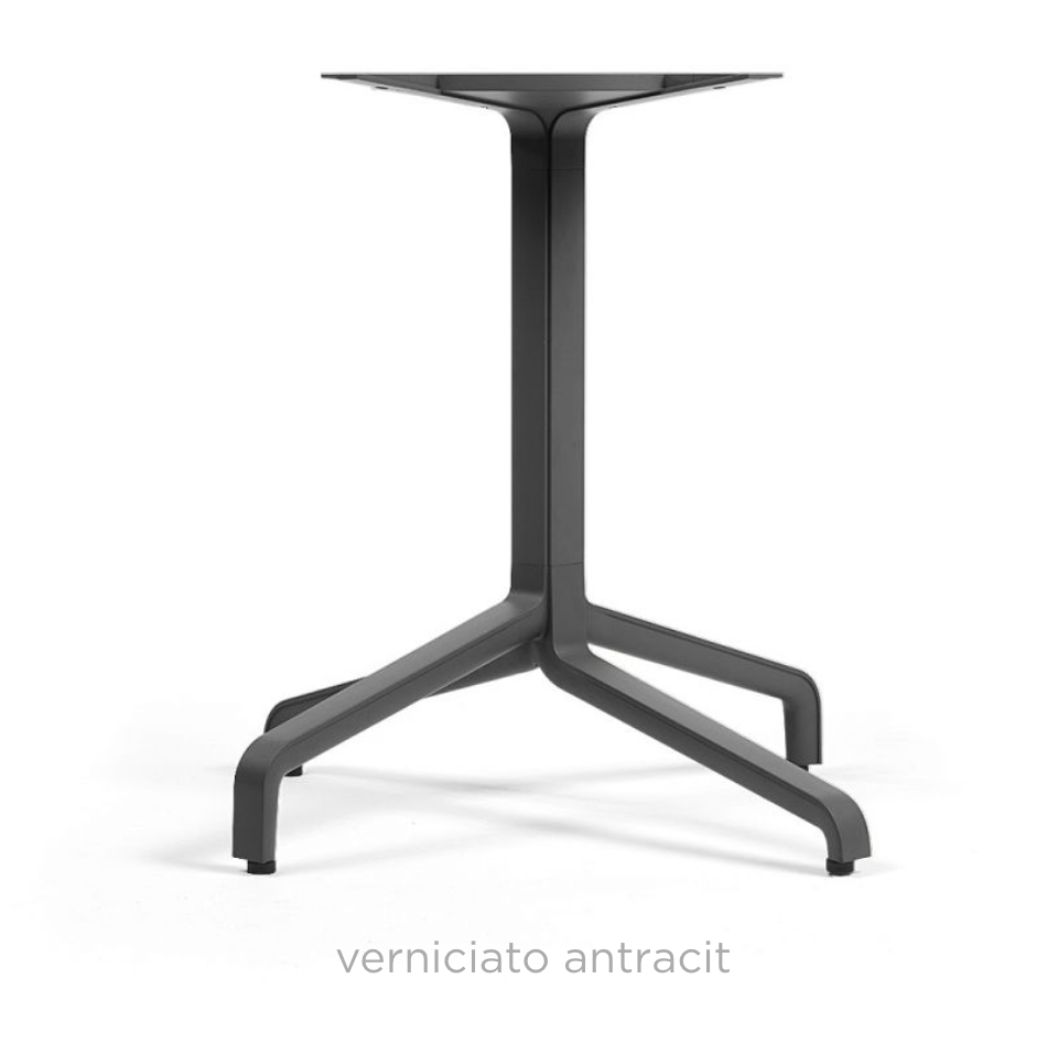 Understel til udendørs cafeborde med et 4-fods midterben af malet aluminium. Innovativ og særligt funktionel til professionel brug og kontraktmarked. Anvendes til bordplader der måler Ø 80 cm, Ø 90 cm, 80 x 80 cm og 90 x 90 cm. Bruges som f.eks. cafebord, sidebord. Stellet er beregnet til udendørs brug.