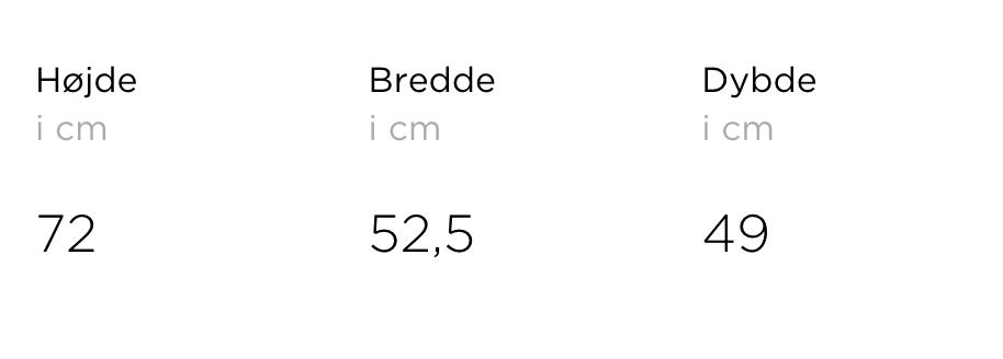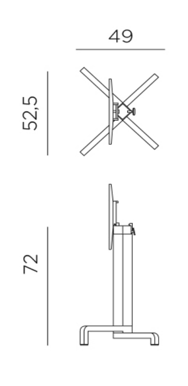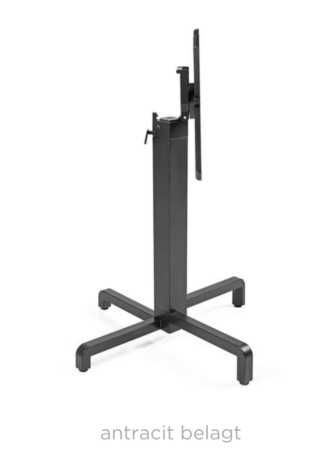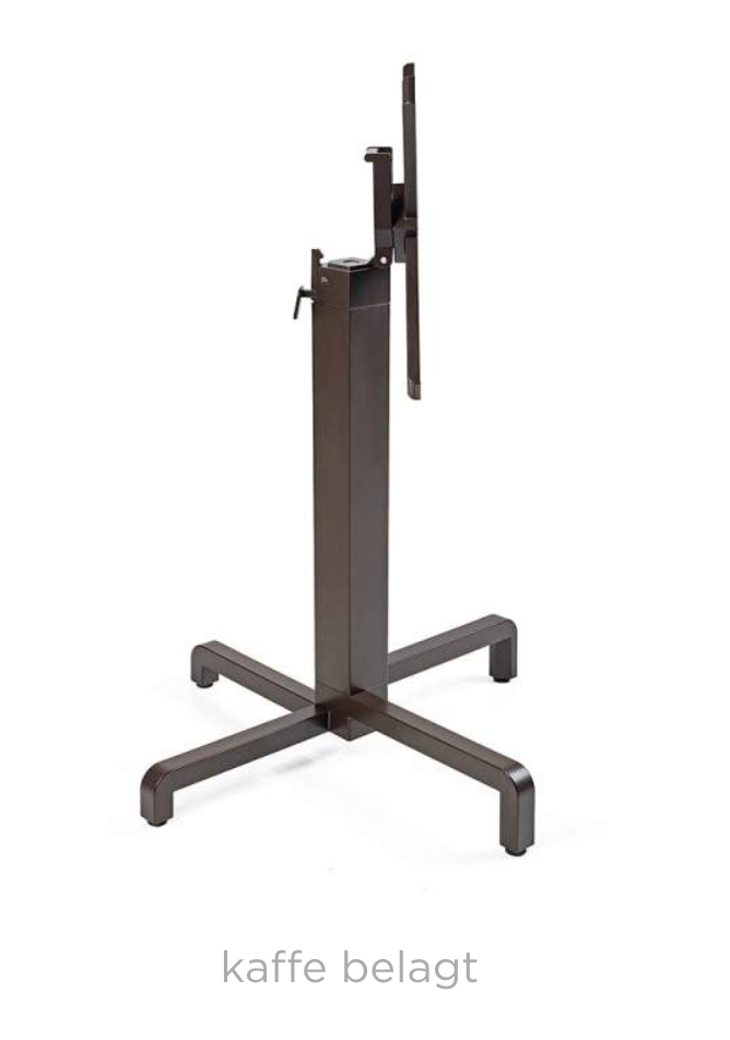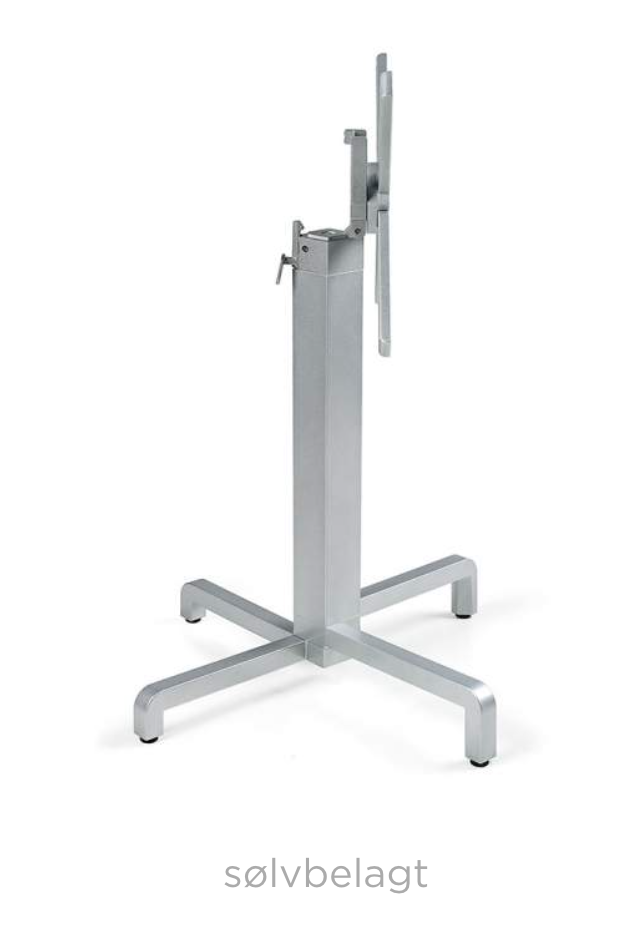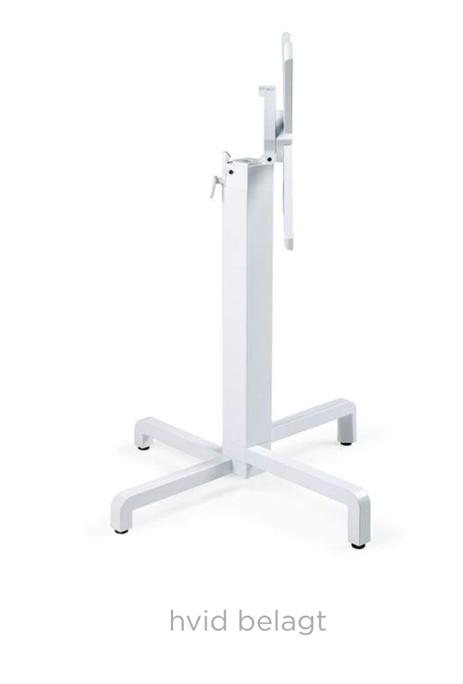 Justerbare fødder i højden. Anvendes med bordplader der måler: Ø60, Ø70, Ø80, 60x60, 70x70 og 80x80 cm.
