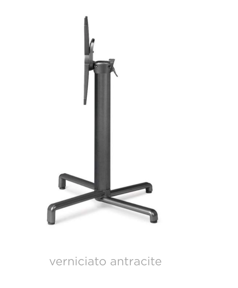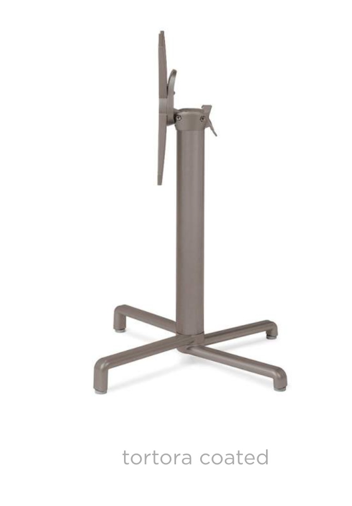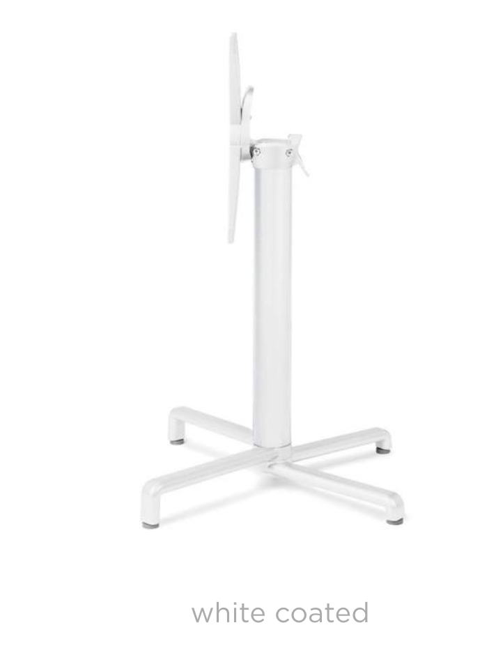 Understel til foldebord. Bordstellet er med et 4-fods centralt ben i belagt aluminium. Bruges som f.eks. cafebord, terassebord. Stellet er beregnet til udendørs brug.