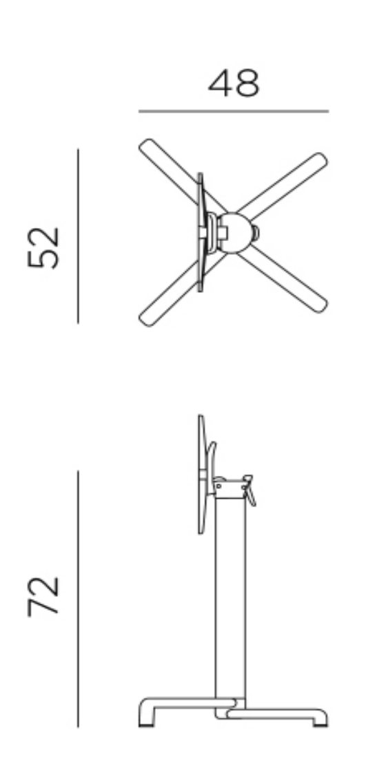 Justerbare fødder i højden. Anvendes med bordplader der måler: Ø60, Ø70, Ø80, 60x60, 70x70 og 80x80 cm.