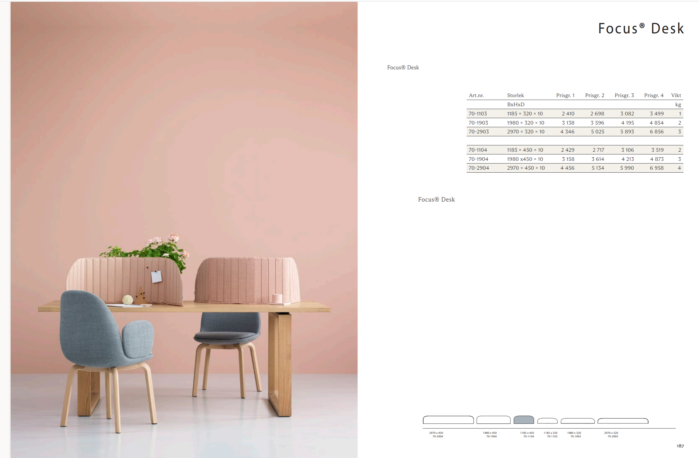 Priser for Focus bordskærm - Priserne er i DKK ekskl. moms (gældende 2023)