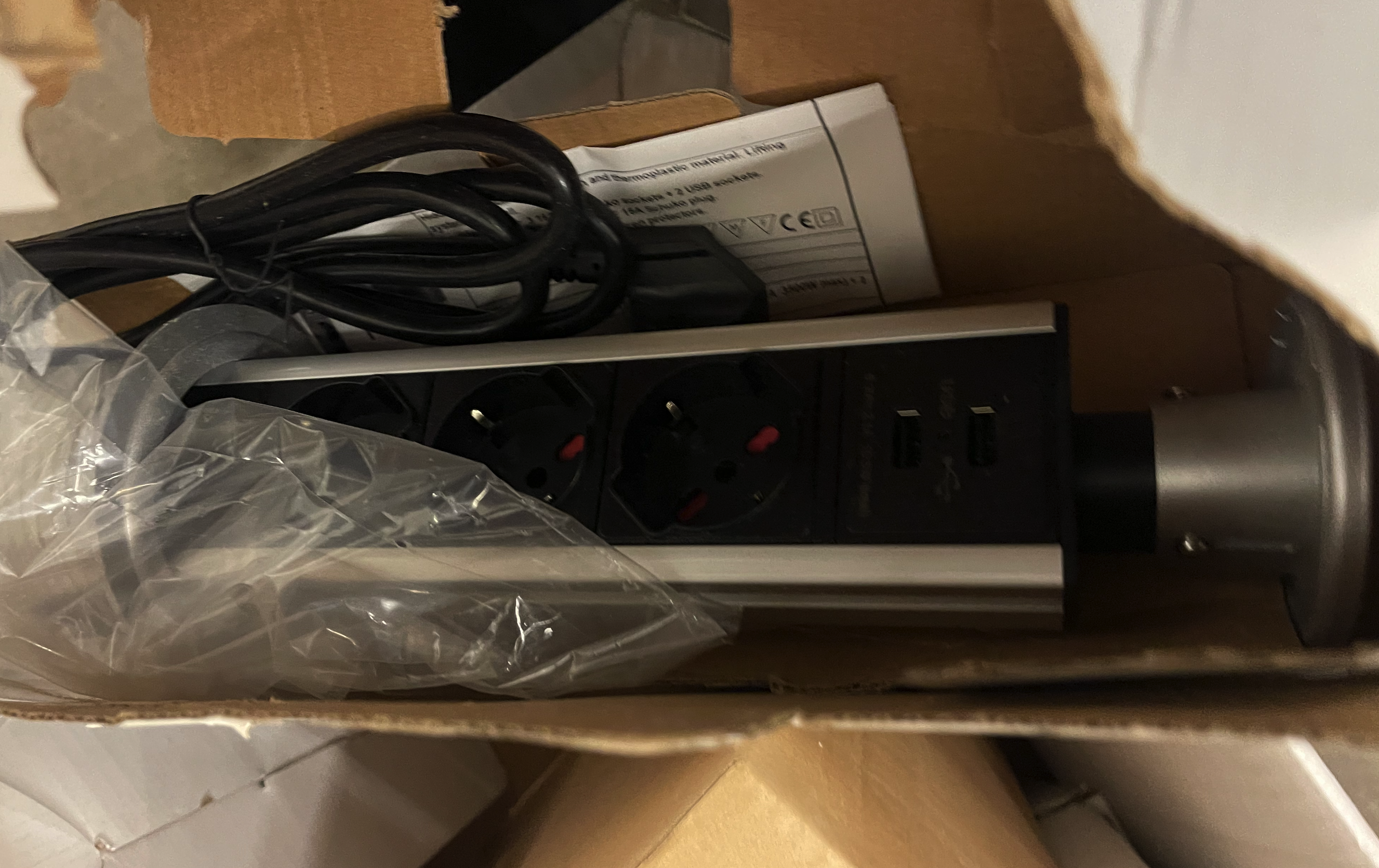 Tower usb - strømstik til kablehul, nu kr. 100.- eks. moms - fragt
