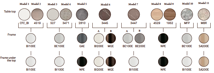 Bordpladen er af solid laminat top eller komposit marmor top (model 10 og model 11).