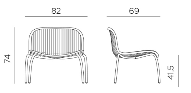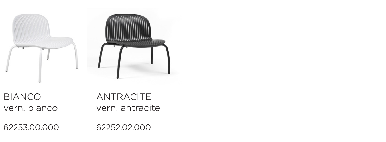 Ninfea Loungestol med sæde i glasfiberharpiks og buede ben i belagt aluminium. Lænestolen er stabelbar og nem at vedligeholde. Stolen kan bruge i flere sammenhæng, og du kan bl.a. indrette dit cafeområde med denne stol eller på terrassen i haven.