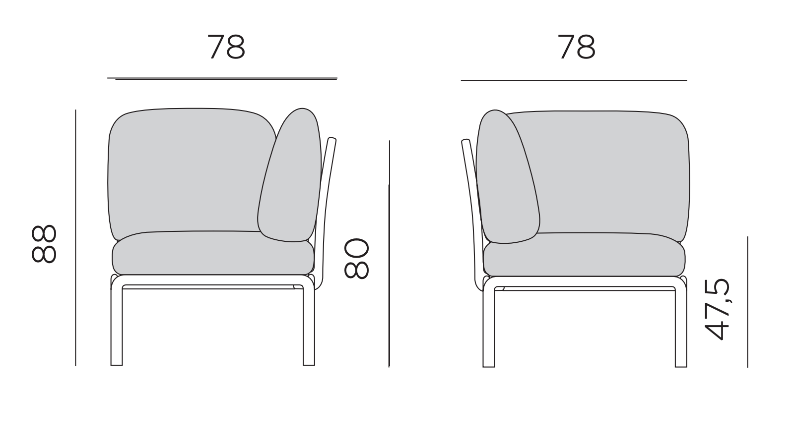 Ryglæn og armlæn kan fastgøres på alle sider af sædet. Aftagelig. Mat finish.