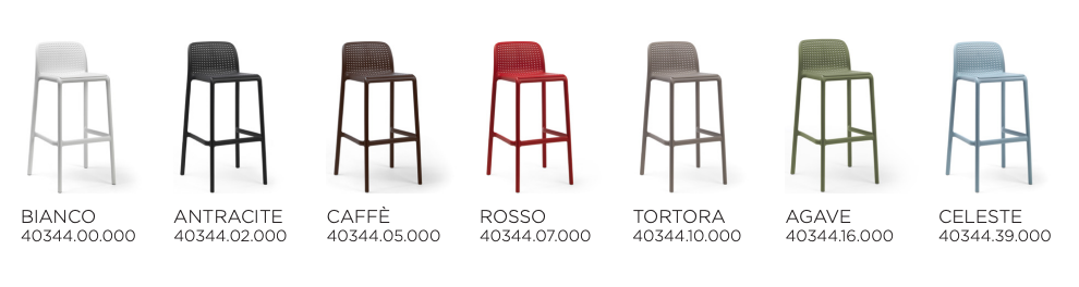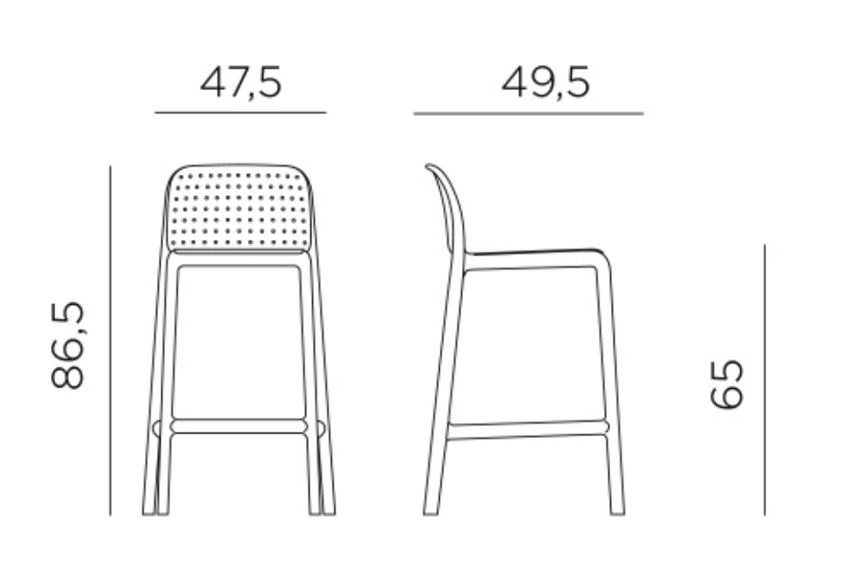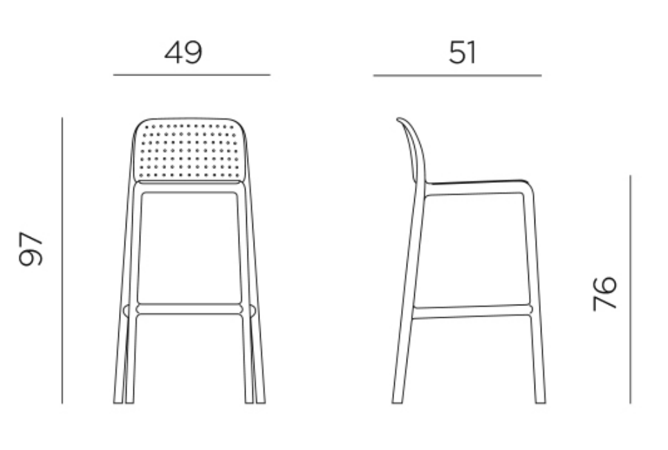 Lido barstol til udendørs brug i to højder. Barstolen har et perforeringsmønster på tværs af sædet og ryglænget, der komplementerer den bløde stofpolstring. Sømløs rørramme og fin størrelse. Let og stabelbar. Barstolen kan bruges til udendørs brug og passer perfekt til ude område på din cafe og til loungeområdet i haven.