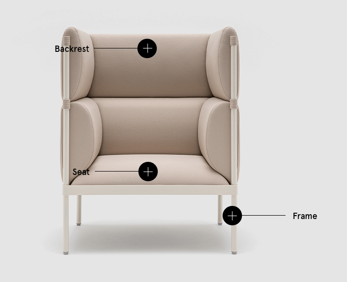 STILT stolen med højt ryglæn, kan købes i et væld af stoffarver og mat farvet stel.
