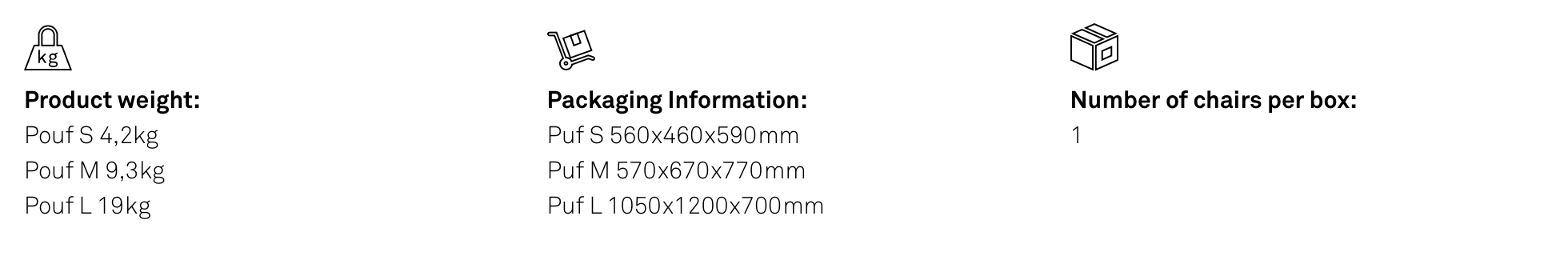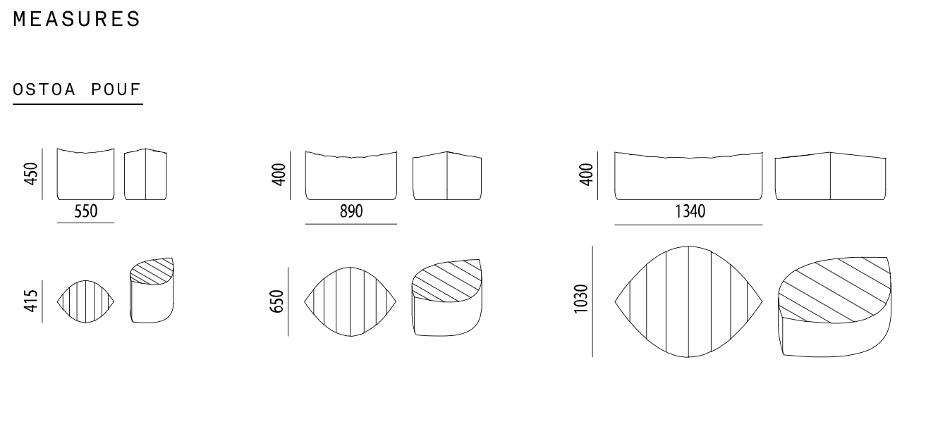 Poufs collection available in 3 different dimensions: S, M y L.