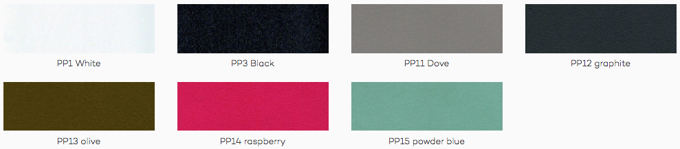 Polypropylenskallen, der fås i 7 farver, kan raffineres med fast pude eller modskærm betrukket med certificeret belægning til kontraktsmarkedet. Ud over uld, trevira, fløjl, faux læder og ægte læder, er det muligt at polstre máni plastik tilbehør med stof eller læder, leveret bestemt direkte af kunden.
