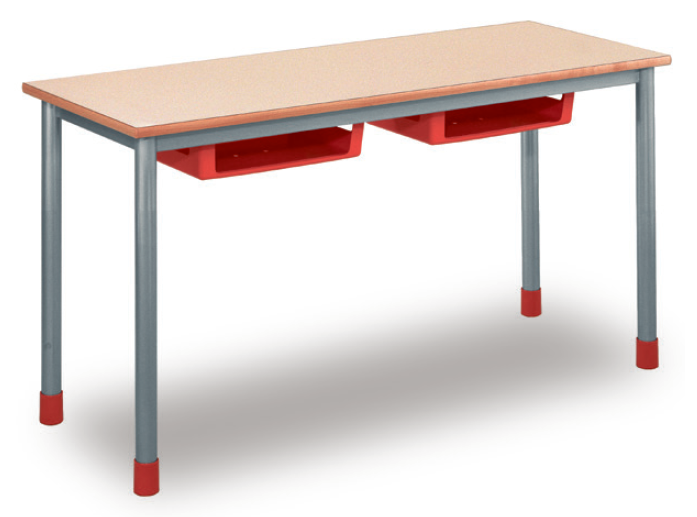 Praktisk og enkelt dobbelt sæde elevbord med metal stel. Både stellet og plastik fod, kan fås i et udvalg af faver. som kan ses længere nede. Bordpladen er i træ og kan vælges i bøg eller elfenben finish. Desuden er der mulighed for at tilvælge en skuffe til bordet, der også findes i et udvalg af farver. Skuffen kan gøre bordet ekstra smart og praktisk. Skolebordet fås i forskellige højder og kan bruges til klasseværelser, institutioner m.m.