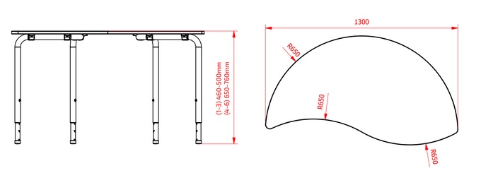 Elevbordet med kurvet kant.