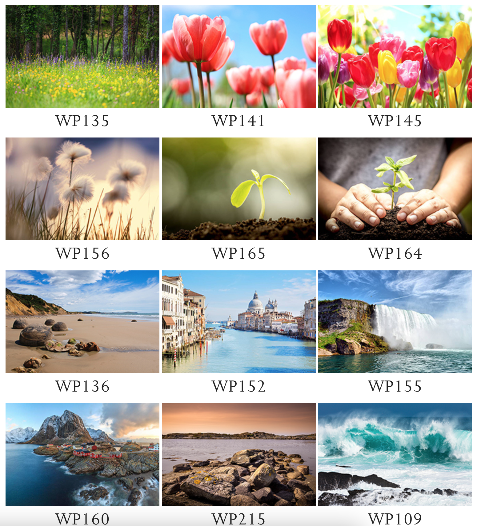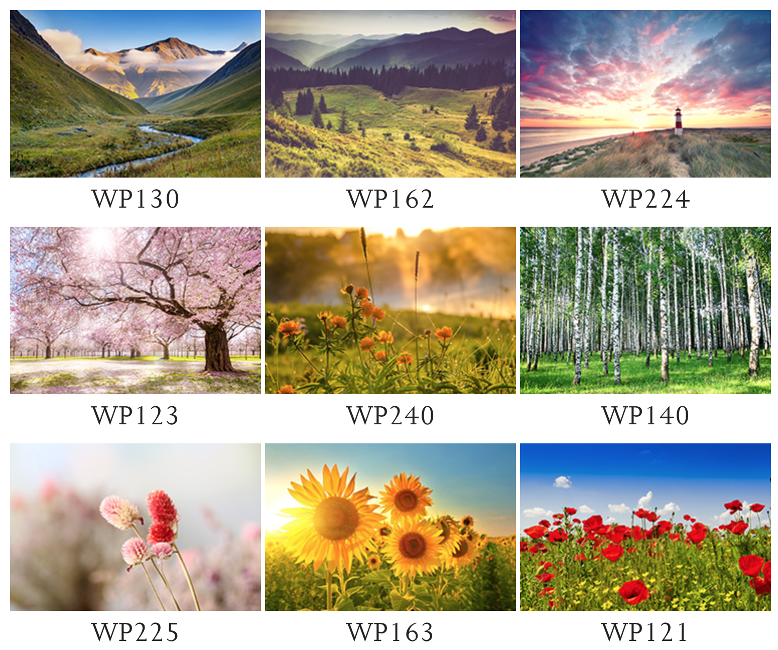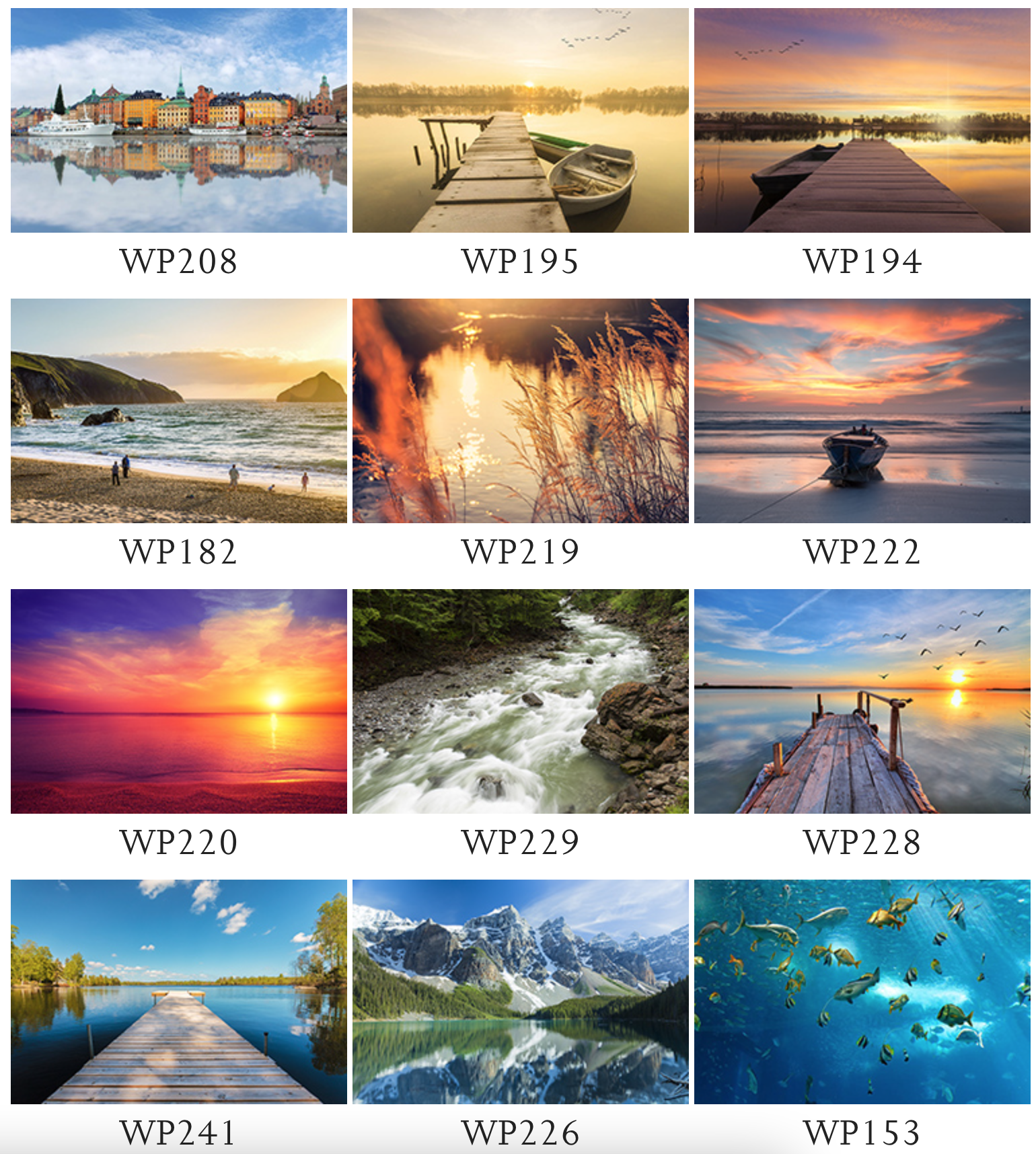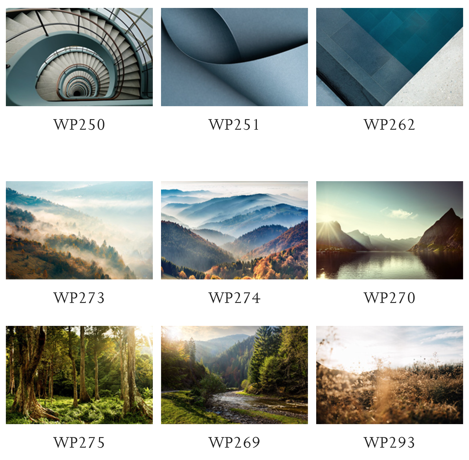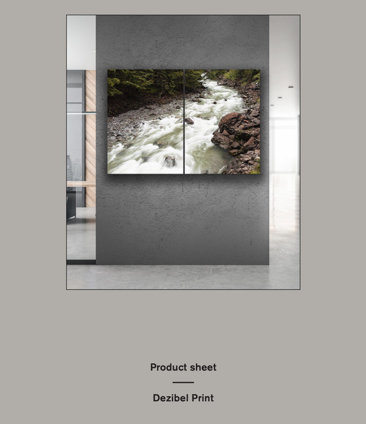 Lydabsorberende væg paneler Dezibel Print / Photo Print er tilgængelig i flere forskellige størrelser. Vælg frit fra motiverne nedenfor eller send dit eget billede.