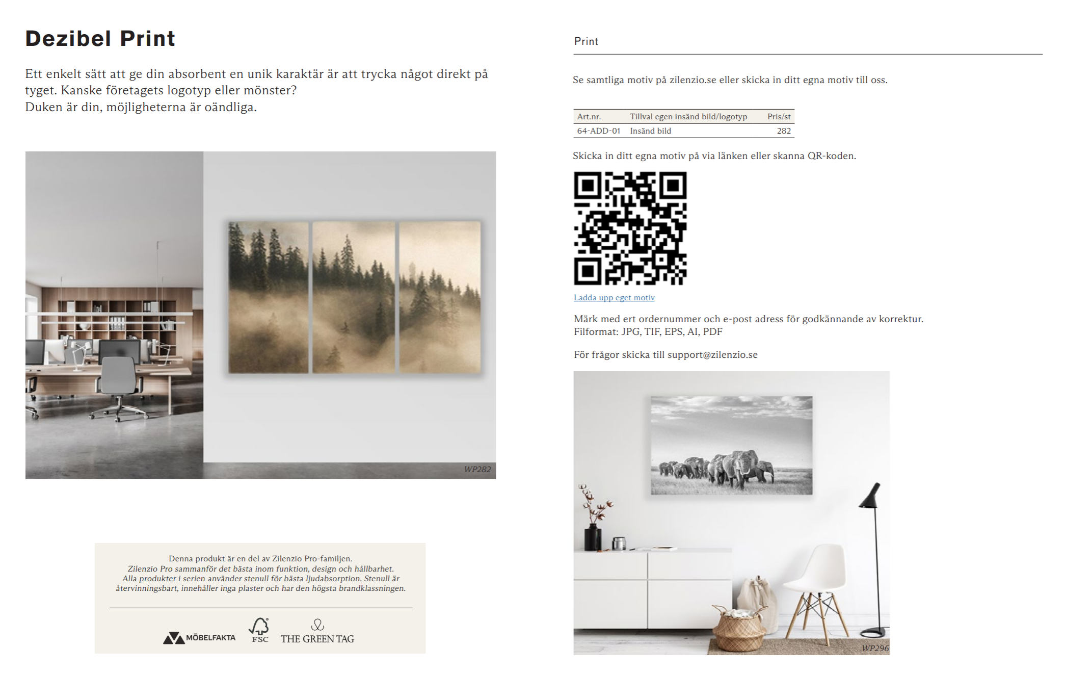 Flotte lydabsorberende væg paneler med print. I kan vælge størrelser i rektangulære og kvadratiske. De rektangulære kan vendes vandret og lodret. Se et stort udvalg af prints i beskrivelsen længere nede på siden. I kan også vælge egne prints.