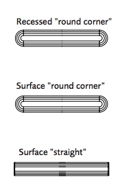 En stilfuld tilbehørsskinne med en moderne følelse, leveres i flere materialer. Kan f.eks. fås som kludbelagt, finer eller laminat. Visuelt opfattes skinnen som to tynde prallelle linjer, der er forbundet med de afrundede ender. Som et alternativ kommer den også med et traditionelt lige finish. Skinnen er enten i hvid pulverlakering eller naturlig anodiseret aluminium.