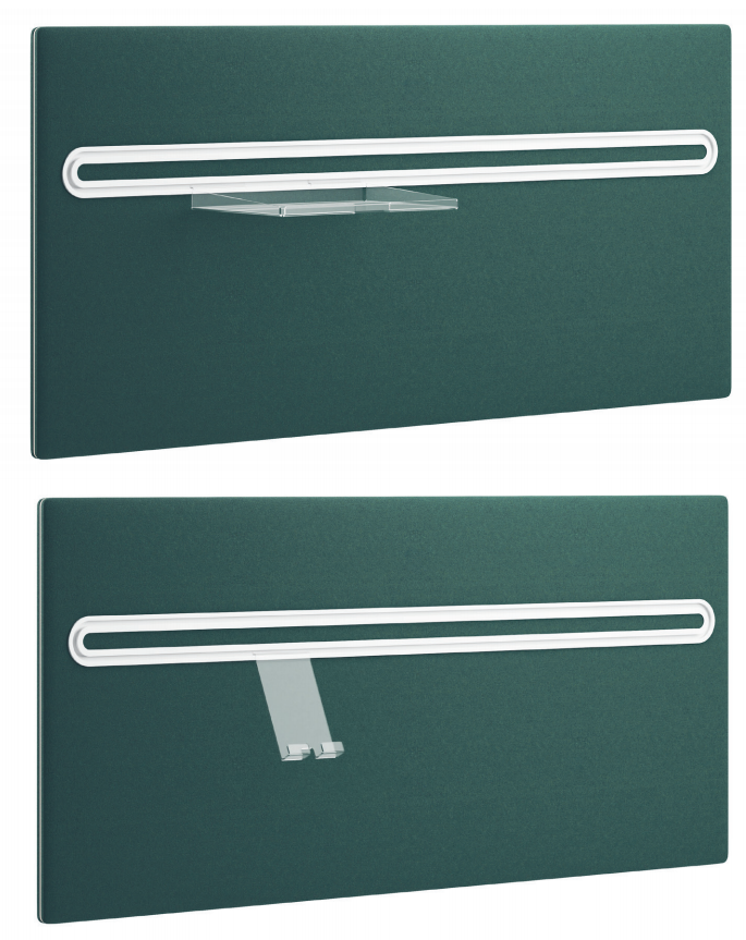 En stilfuld tilbehørsskinne med en moderne følelse, leveres i flere materialer. Kan f.eks. fås som kludbelagt, finer eller laminat. Visuelt opfattes skinnen som to tynde prallelle linjer, der er forbundet med de afrundede ender. Som et alternativ kommer den også med et traditionelt lige finish. Skinnen er enten i hvid pulverlakering eller naturlig anodiseret aluminium.