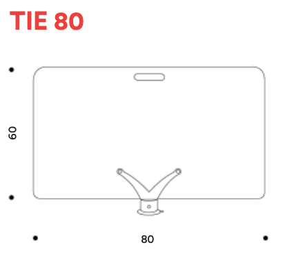 TIE skærmen er transperent og lavet af plexiglas. Den kan købes i 2 størrelser: 60x80 eller 60x100. Supportholderen til plexiglasset er i sort for et minimalistisk look.