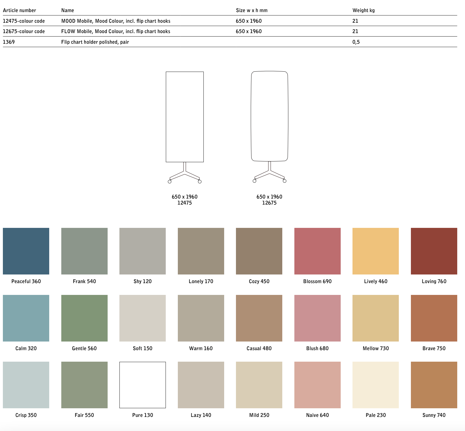 Mobil skrivetavle i hærdet glas og som fås i alle 24 Mood-farver. De runde former giver Mood Flow Mobil et moderne udtryk og indbyder til anvendelse. Fødder og ben i poleret aluminium og hvidlakeret bagside. Designet af HALLEROED.