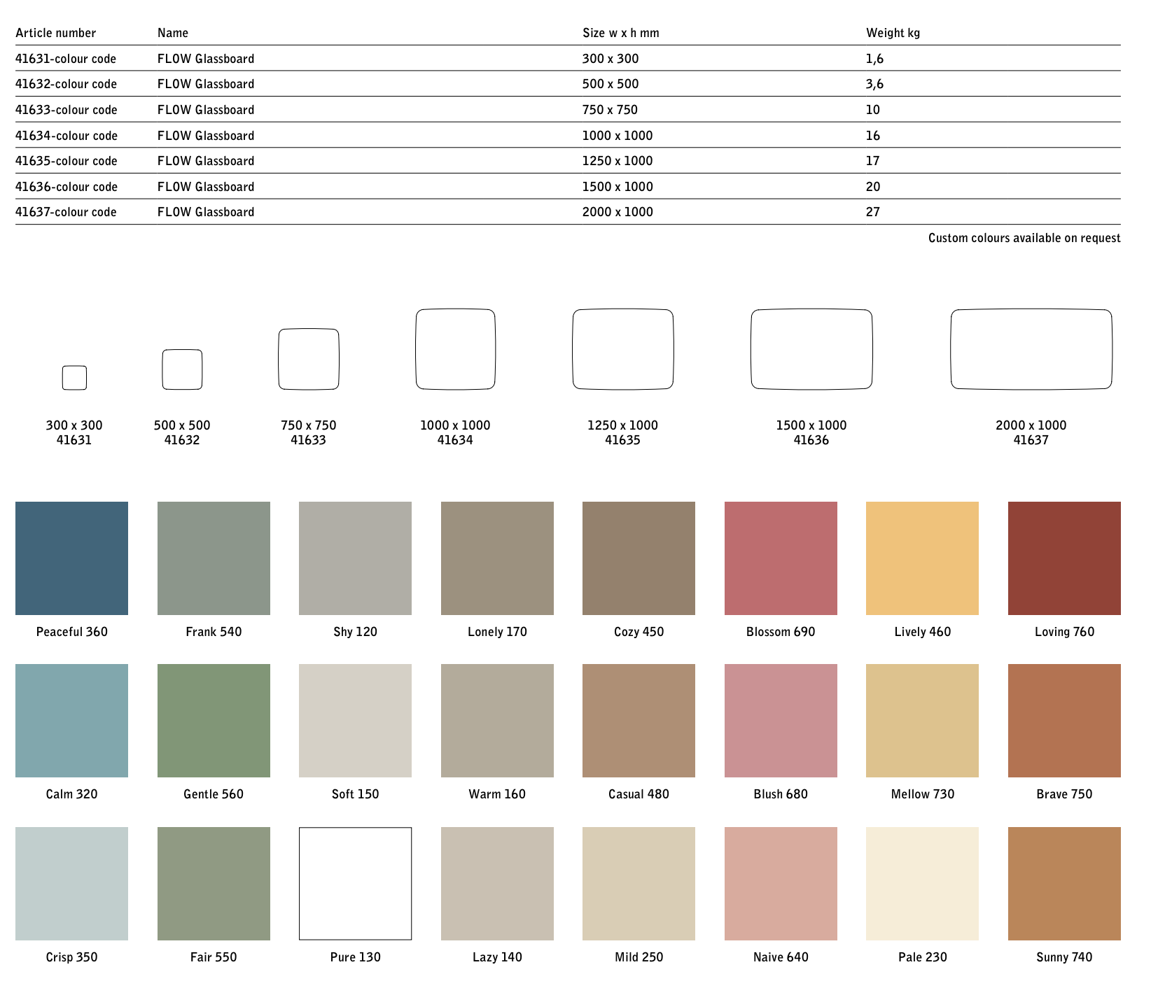 Mood Flow er en magnetisk skrivetavle i glas med afrundede hjørner. Tavlen giver et blødt udtryk i rummet og er samtidig funktionel. Vælg mellem 24 Mood-farver og skab et dekorativt miljø. Mood Flows enkle, unikke design og brede farveskala giver karakter til ethvert rum. Designet af HALLEROED.