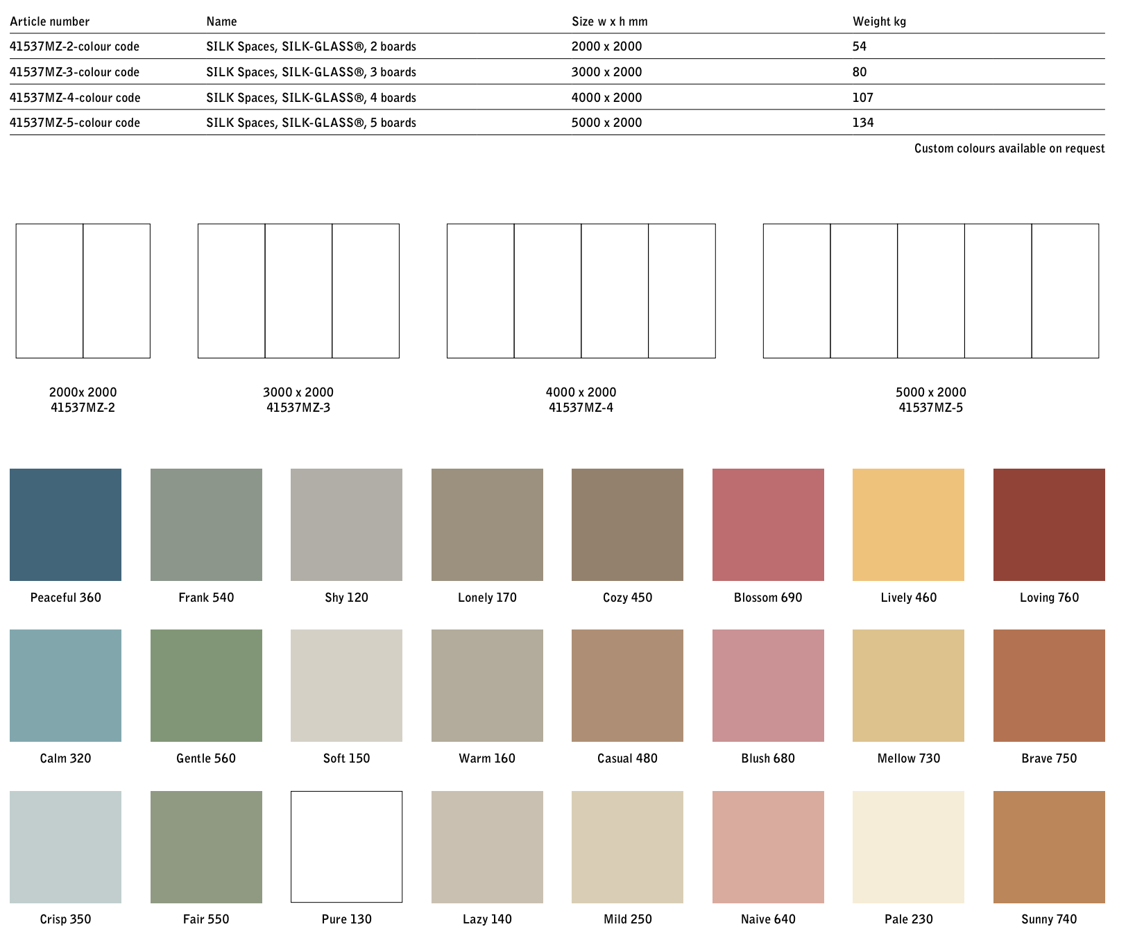Ved at sætte flere tavler med Silk-glass sammen, er det muligt at skabe større skriveoverflader uden refleksioner. Den unikke overflade giver vores 24 udvalgte farver en dybde og smukke farvenuancer, der fanger dagens skiftende lys. En revolutionerende mat overflade.