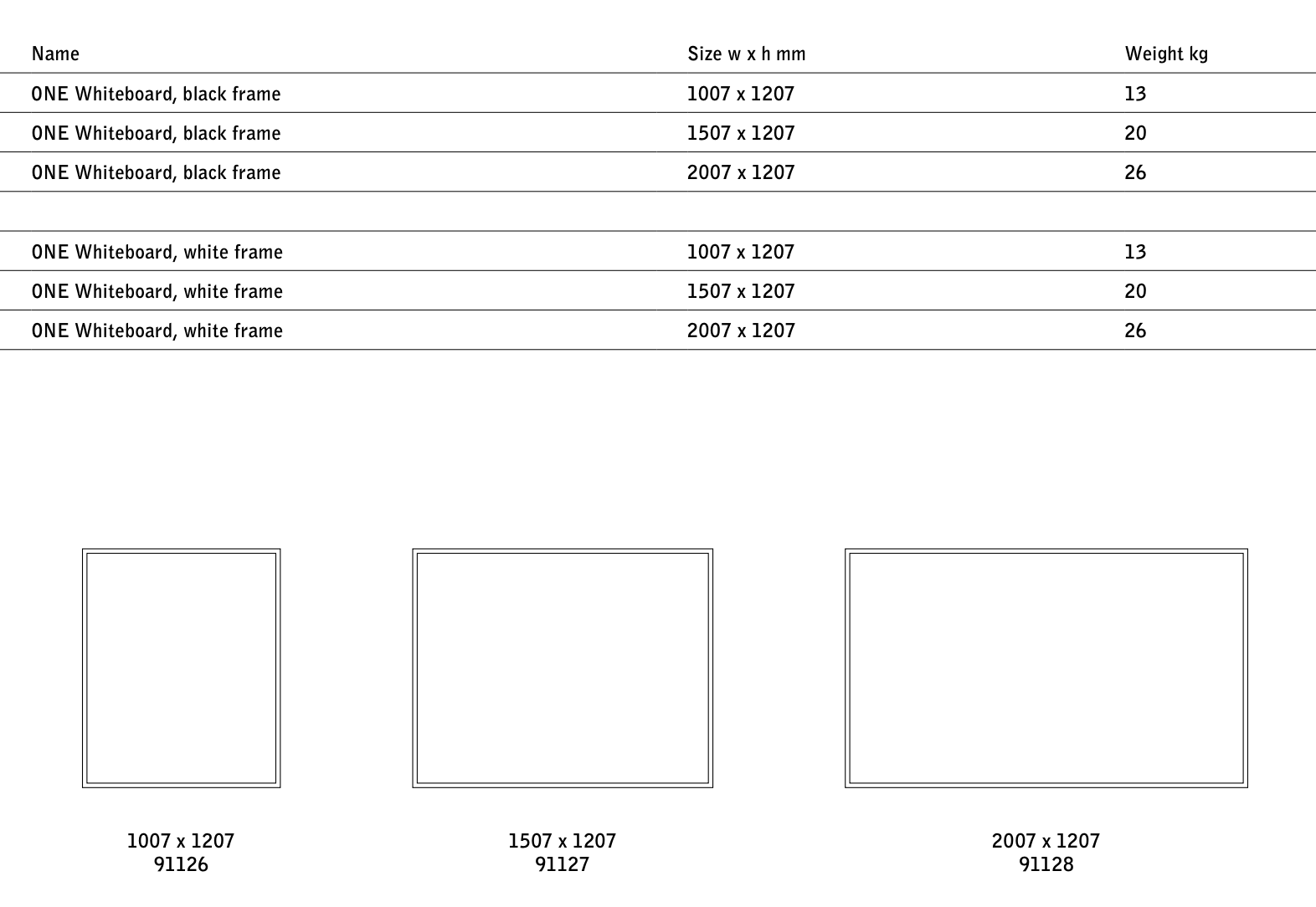 ONE WHITEBOARDTAVLE SORT ELLER HVID RAMME