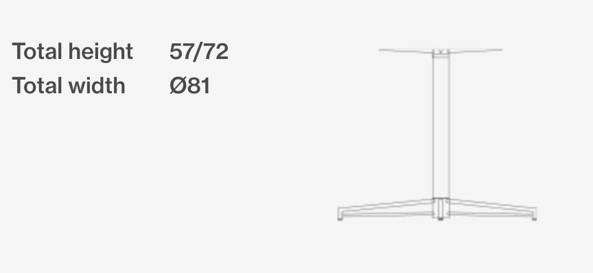 Anbefalede bordplade til 52 og 72 højde er Ø100-Ø150 / 240-420x110 (2-3 stk)