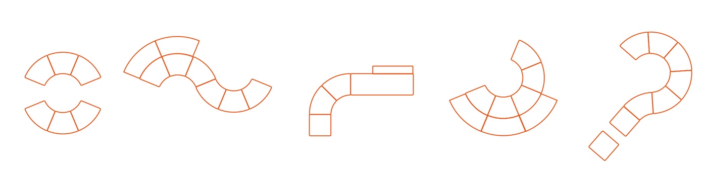 Ved sammensætning med andre pufs og sofaer, er der her inspiration til hvordan du f.eks. kan opstille dine pufs og sofaer.