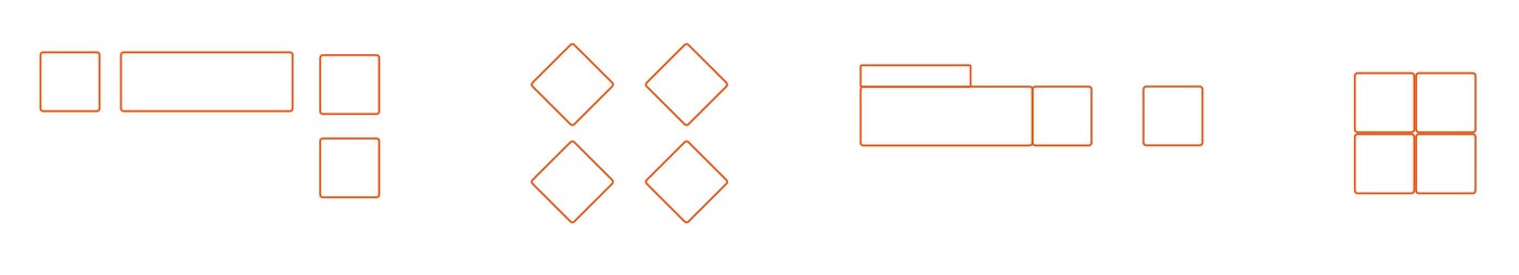 Ved sammensætning med andre pufs og sofaer, er der her inspiration til hvordan du f.eks. kan opstille dine pufs og sofaer.