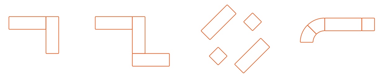 Ved sammensætning med andre pufs og sofaer, er der her inspiration til hvordan du f.eks. kan opstille dine pufs og sofaer.