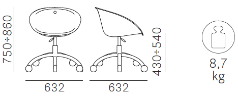 Stellet er af formstøbt poleret aluminium, hvori der er en gasløfterenhed, for let justering af højden.