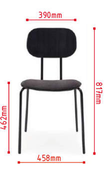 Sæde med finer - lakeret krydsfiner i 7 farver: lys ask, rød RAL3016, Lys grå RAL7042, Mørk grå RAL7044, Burgundy RAL3007, Mørk grøn RAL6012, Sort RAL9005