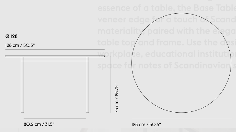 Base table round har en finér kant for et strejf af skandinavisk materialitet med de elegante former på bordpladen og rammen.