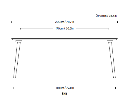 Dimensioner: H: 73 cm, D: 90 cm, L: 200 cm