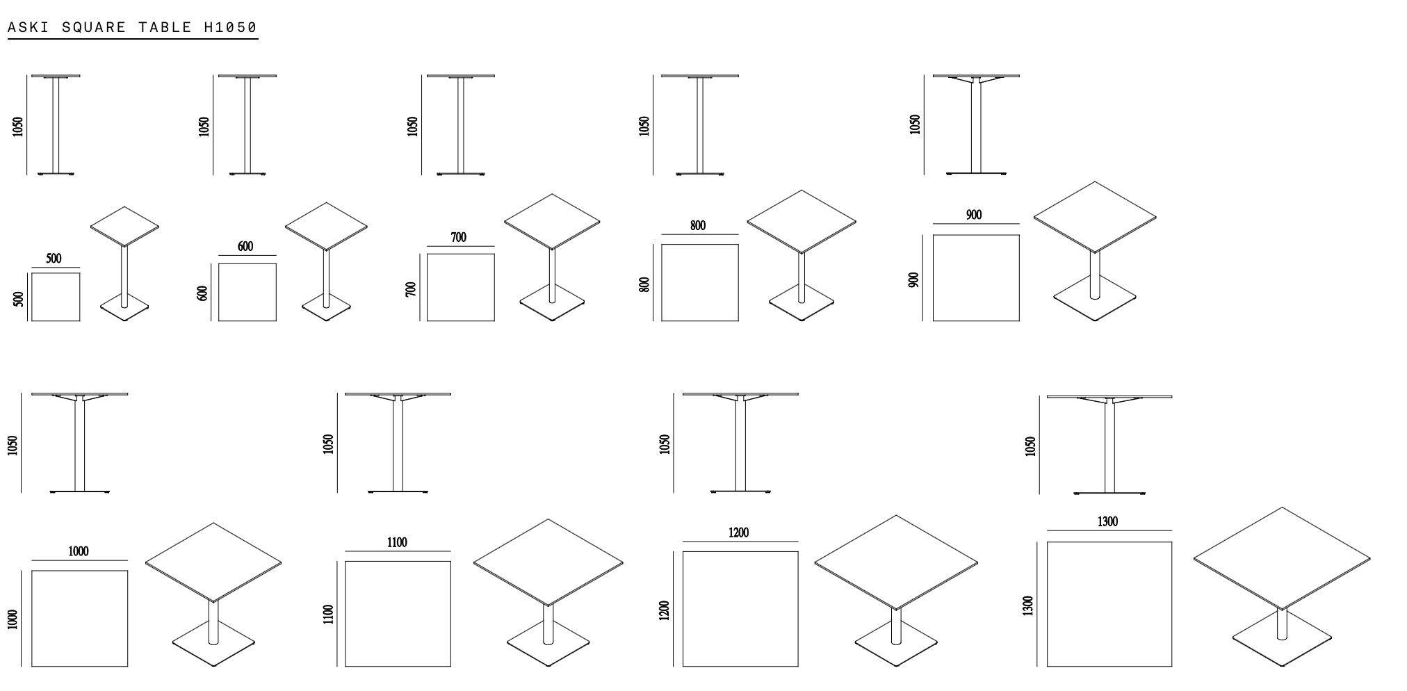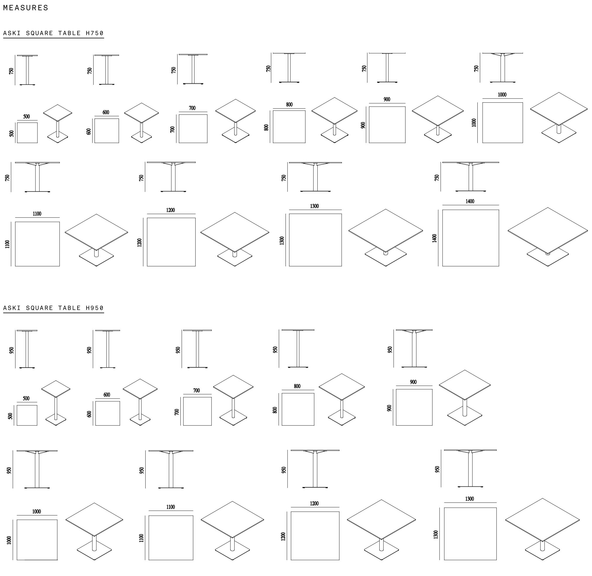Ecodesigned central column tables optimized to obtain the greatest resistance minimizing the material used in each version, thereby avoiding additional unnecessary material. A wide range of dimensions, from 600mm to 1600mm in several heights. All sizes are prepared for electrification.