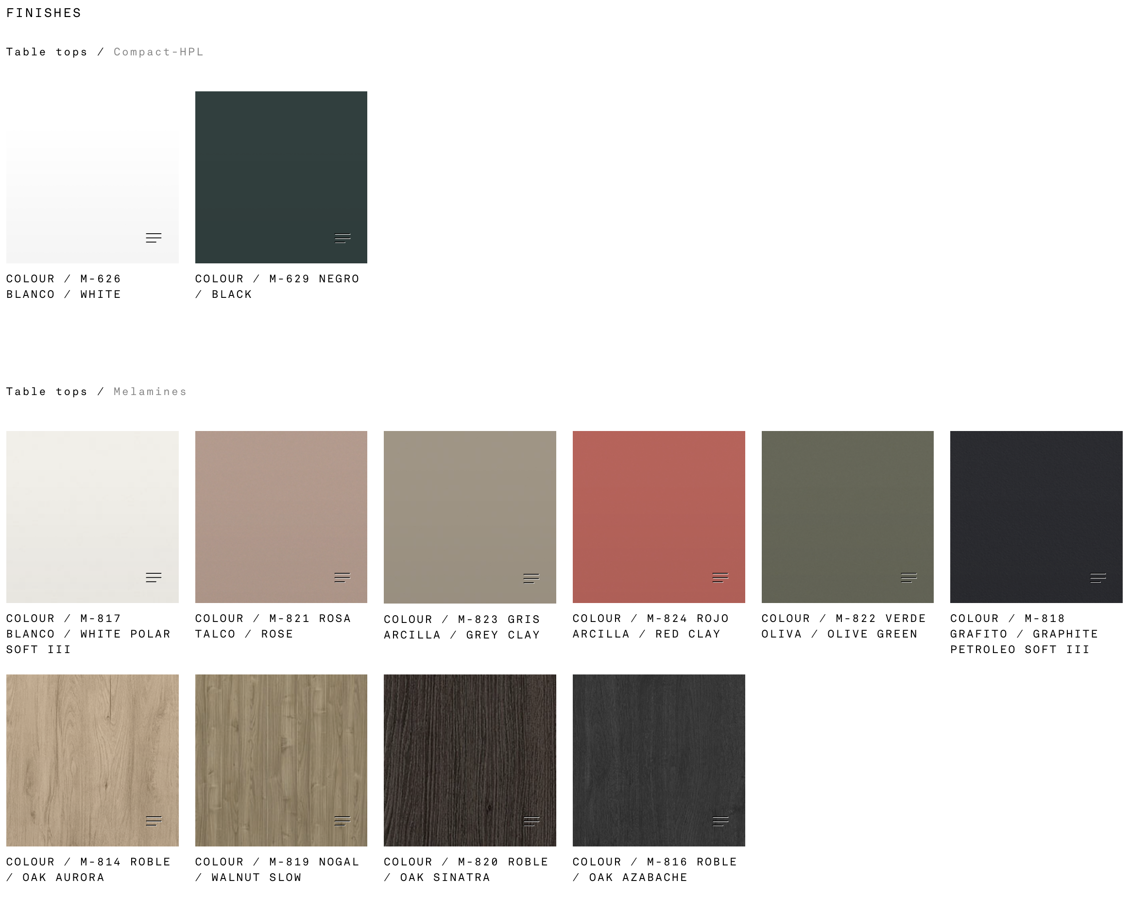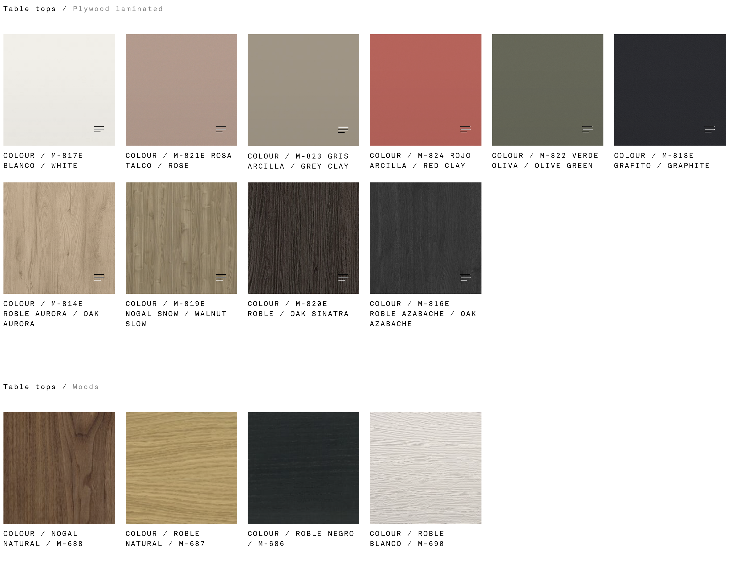Ecodesigned central column tables optimized to obtain the greatest resistance minimizing the material used in each version, thereby avoiding additional unnecessary material. A wide range of dimensions, from 600mm to 1600mm in several heights. All sizes are prepared for electrification.