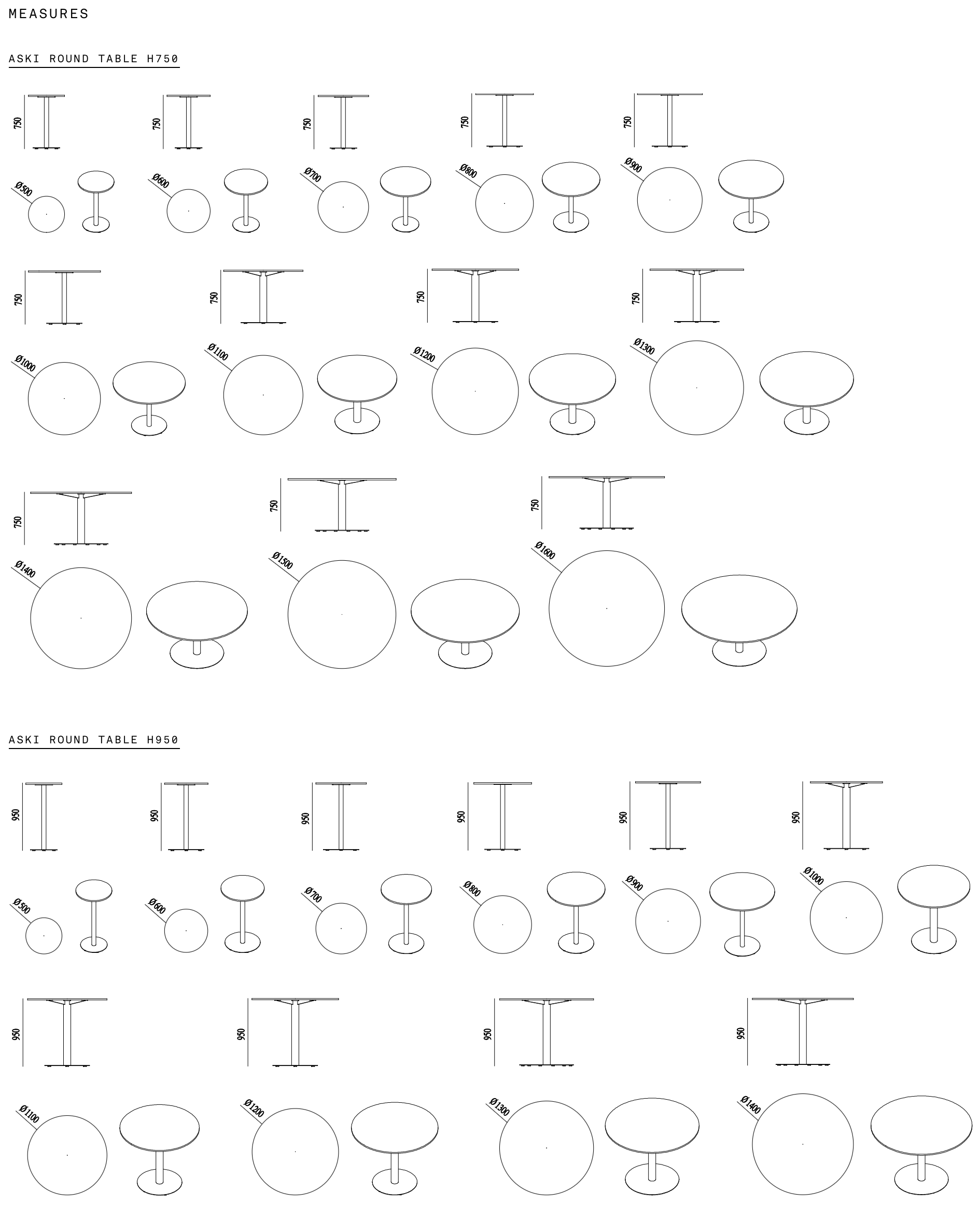 Base Square or round in S-275 grade steel in several dimensions depending on the top size. Bevelled edges and smoothened surfaces to ensure the optimal adhesion to the paint. Variable widths of sheet from 5mm to 16mm. Powder coated finish. Base prepared for electrification exit.