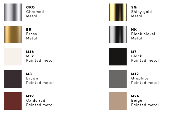 Polypropylenskallen, der fås i 7 farver, kan raffineres med fast pude eller modskærm betrukket med certificeret belægning til kontraktsmarkedet. Ud over uld, trevira, fløjl, faux læder og ægte læder, er det muligt at polstre máni plastik tilbehør med stof eller læder, leveret bestemt direkte af kunden.