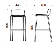 Stolens dimensioner er: B 445 mm D: 480 mm H: 920 mm, siddehøjden er 445 mm.