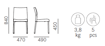 Stolene fås med sidekoblingsbeslag i grå polypropylen, der påføres benene og gør den velegnet til mødelokaler.