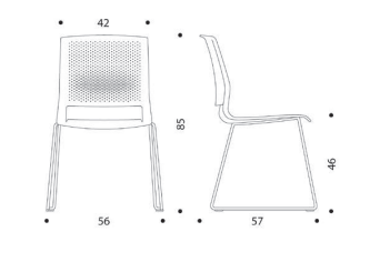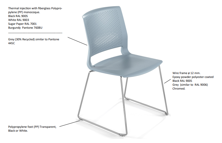 Sædet og ryglænet er i polypropylen med åndeligt hulmønster i ryglænet.