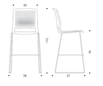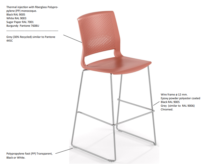 Sædet og ryglænet er i polypropylen med åndeligt hulmønster i ryglænet.