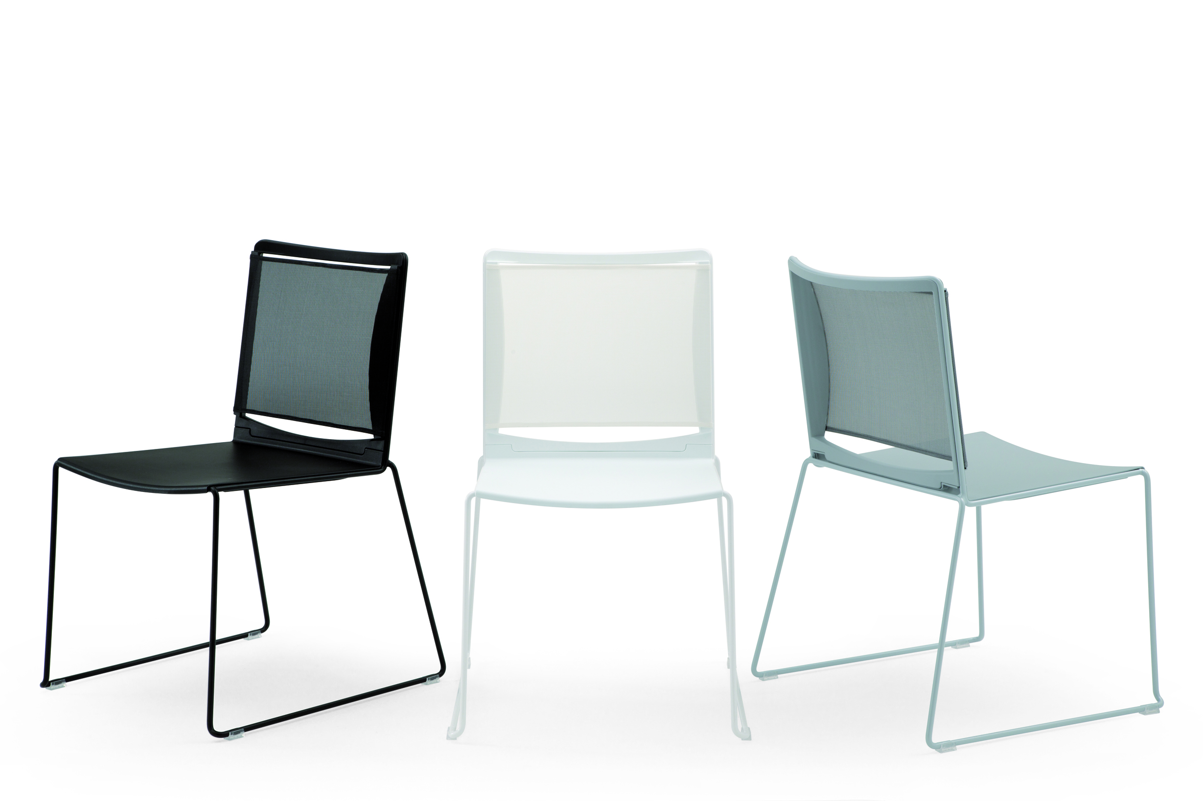 Stabelbar konferencestol med mesh ryglæn i flere farver.