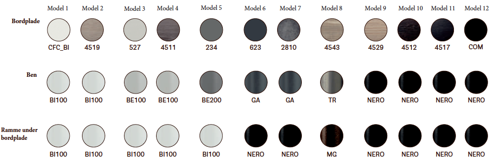 To elektriske aktuatorer der er forbundet til en styreenhed og aktiveret af to knapper placeret under toppen, bevæger sig som en og giver mulighed for at vælge den ideelle højde på toppen, fra 740 til 1140 mm, for at opnå maksimal komfort i løbet af arbejdsdagen.