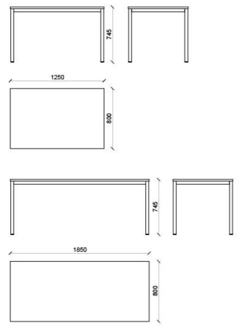 Bordet fås i to længder som passer til henholdsvis fire eller seks stole.