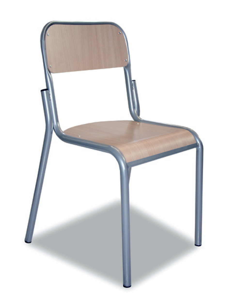 Denne komfortable skolestol kan fås i forskellige størrelser. Sæde og ryglæn er af træ og stel i solid metal, som kan fås i et udvalg af farver, som kan ses nedefor. Desuden er elevstolen stabelbar.
