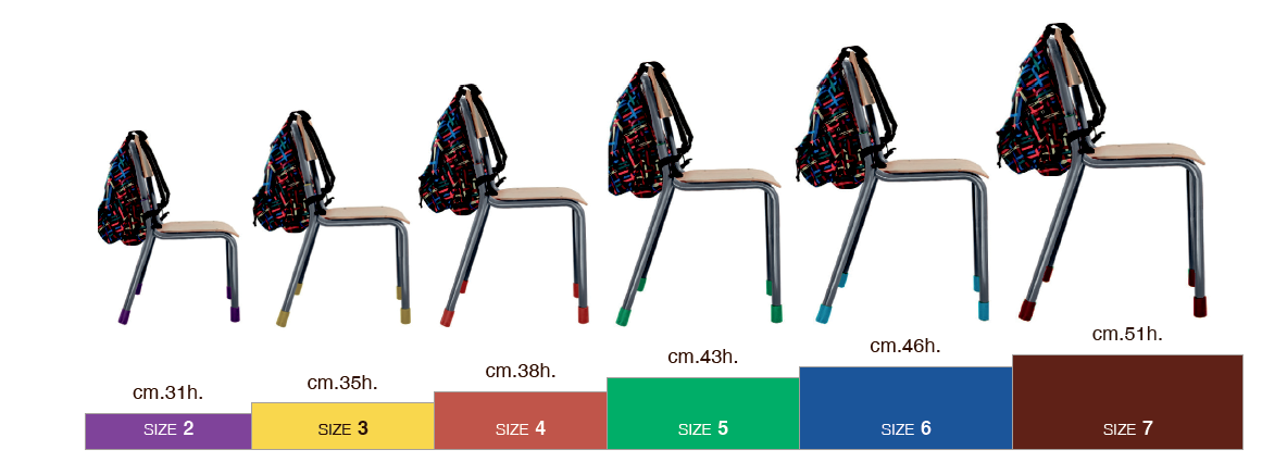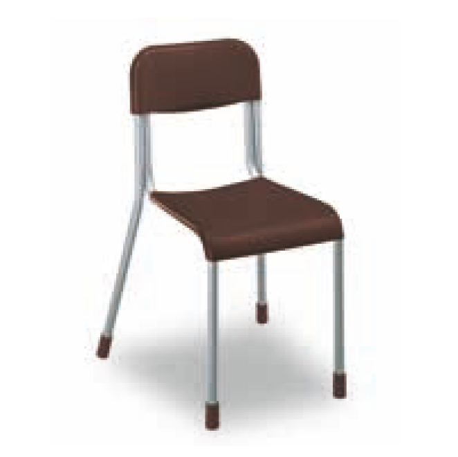 Enkel og stabelbar elevstol der kan fås i flere sædehøjder. Stolen er i plastik med metal stel. Idet både stel og sæde fås i et udvalg af farver, giver det flere indretningsmuligheder. Skolestolen kan bruges i klasselokaler, grupperum, kantiner m.m.