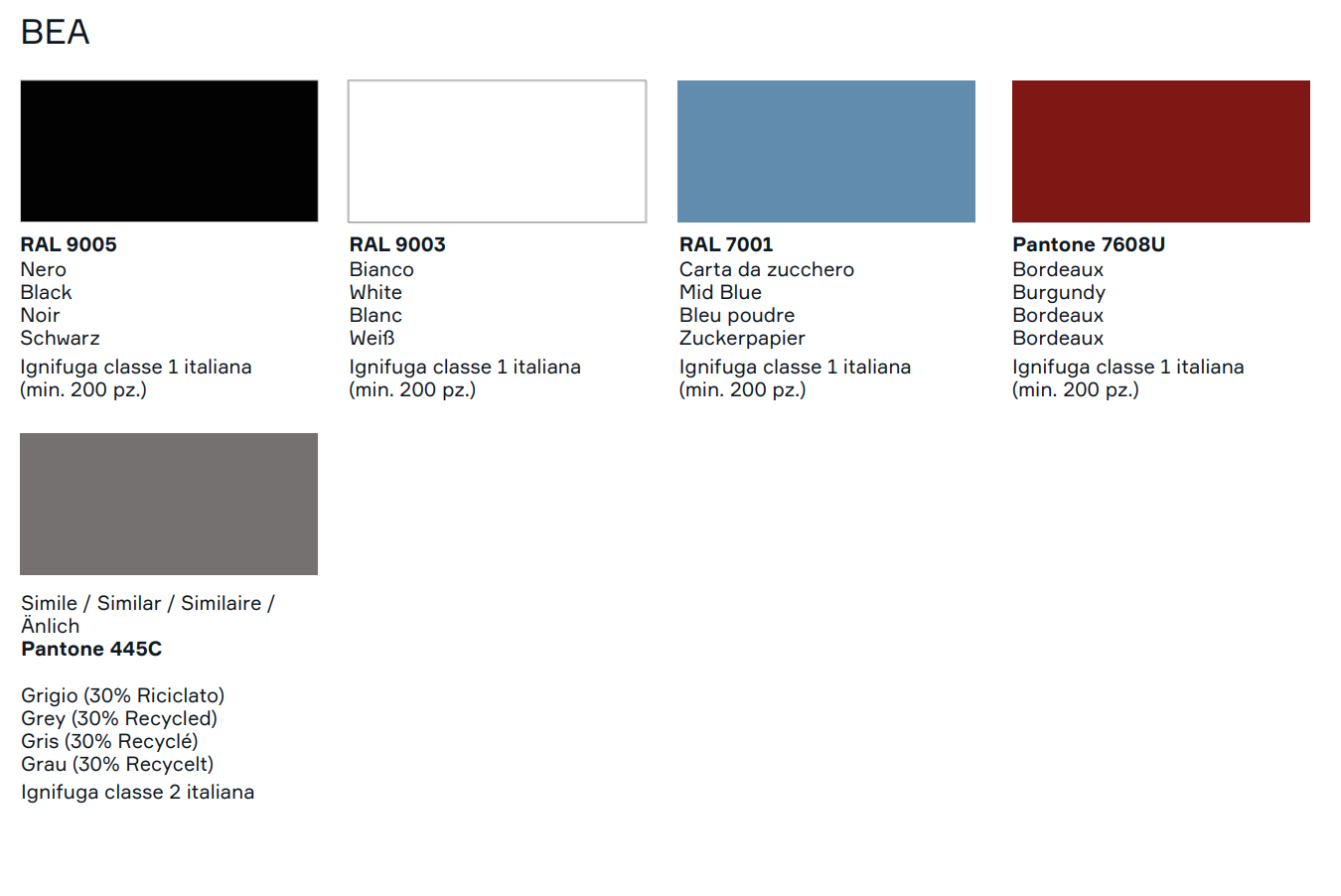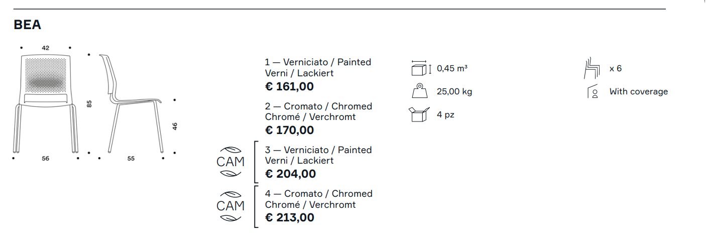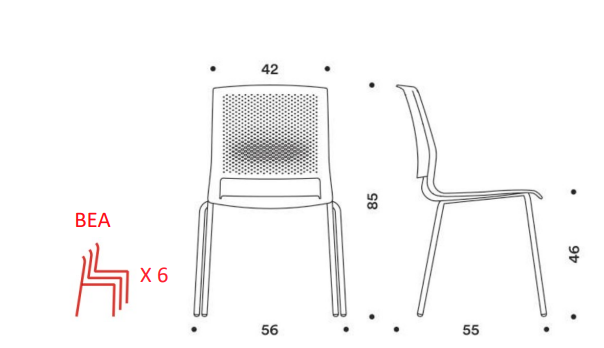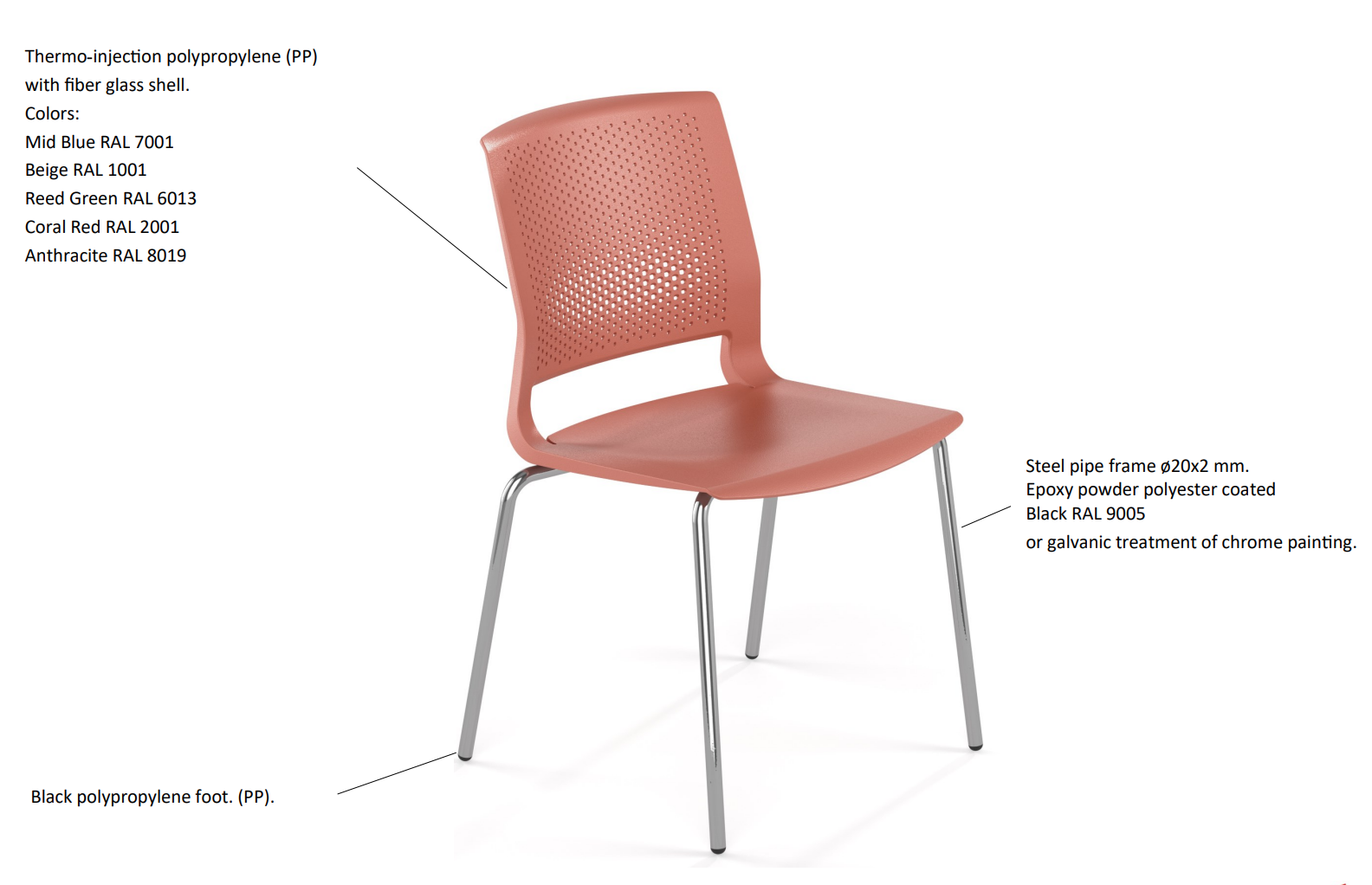 Bea har et formet ryglæn med hulmønster, der garanterer en korrekt kropsholning og en fremragende åndbarhed i lang tid. Bea er designet til at tilpasse sig, hvor der er behov for at bevare koncentraionen og lette samarbejdet mellem kolleger, kunder og studerende.