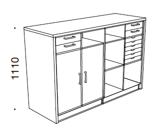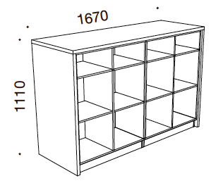 LITE CUBE skranken opbygget af reolmoduler og er god til opbevaring af brochurer, papirer eller diverse kontorartikler. Denne skranke kan fåes i 2 modeller - en med åbne rum og en med skabe og skuffer, så man kan gemme mapper osv. væk.
