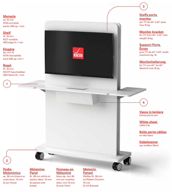 Køb TORRE som kun whiteboard eller med tvsupport og hylde