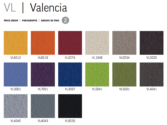Polyamid - femstjernet base lavet af forstærket polyamid, farvet sort. Pulverlakeret / poleret aluminium - femstjernet base lavet af støbt rent aluminium i pulverlakeret eller poleret finish. Pulverlakeret i sølv matallisk eller sort.