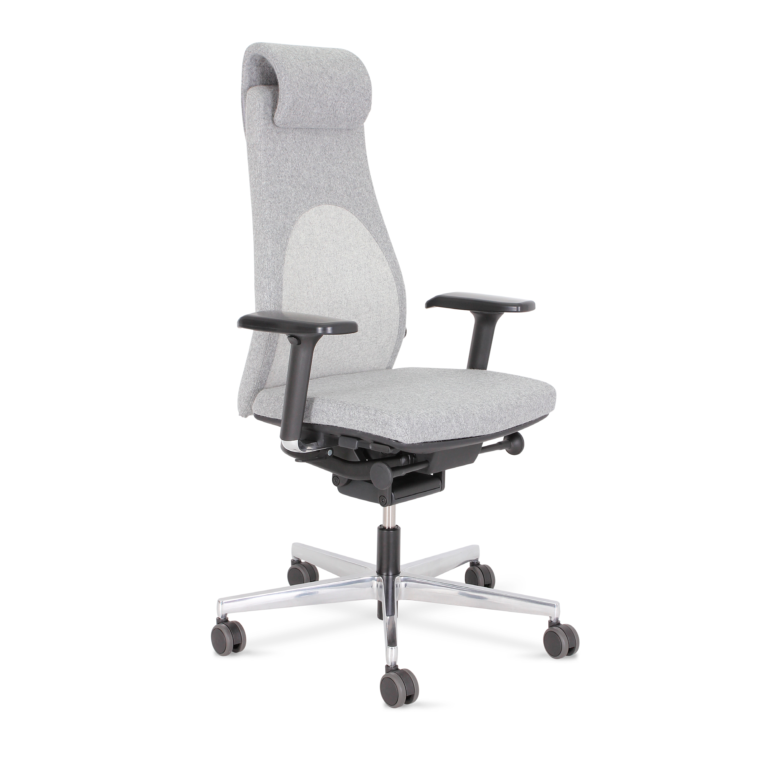 Ergonosmisk ryglæn: stolens indsnævring mod det øverste ryglæn og den yndefulde form gør det muligt for alle brugere at bevæge sig let sidelæns.